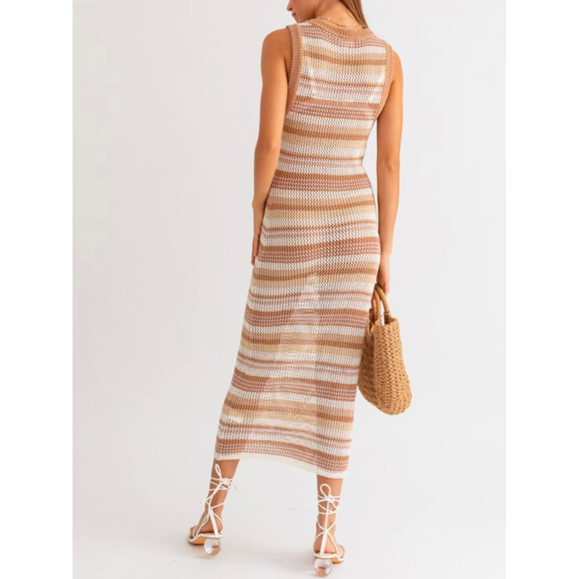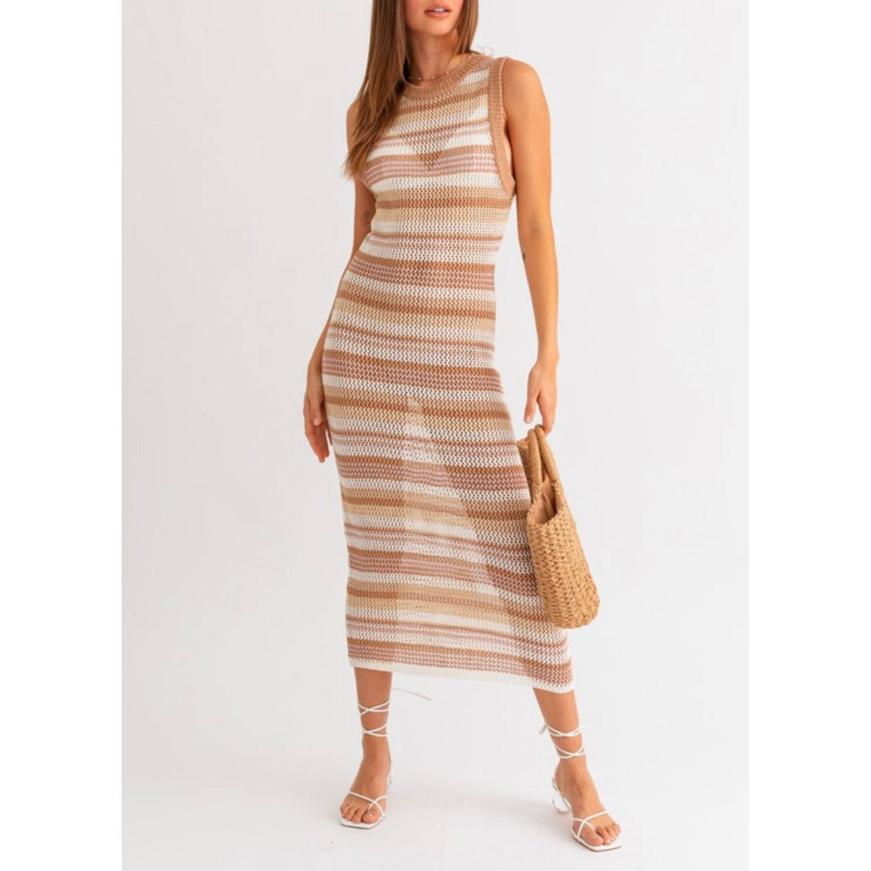 Make a splash as the ultimate beach babe in our Sierra Beach Midi Dress! This sleeveless stripe sweater midi dress is your go-to for summer fun and parties. Don't leave for your beach vacation without packing this must-have piece for effortless style under the sun!