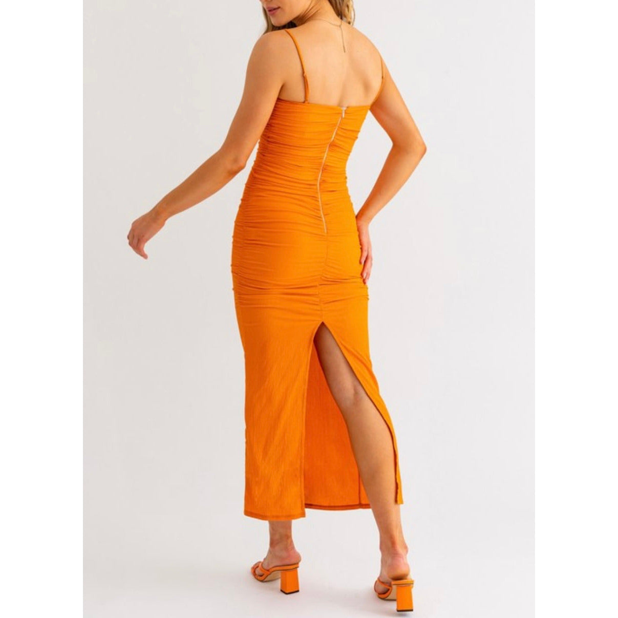 Prepare to showcase your summer body in style with the Sarai Summer BodyCon Maxi Dress! Featuring ruched detailing and a back slit for added edgy flair, this maxi dress is perfect for any summer occasion, from parties to weddings. Embrace the season with this essential dress that you won't want to miss!