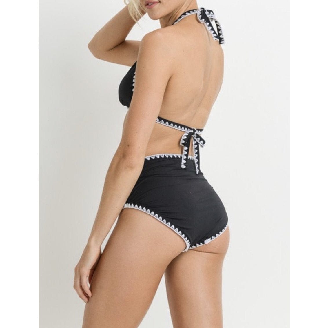 Hazel Black White High Waist Bikini Set